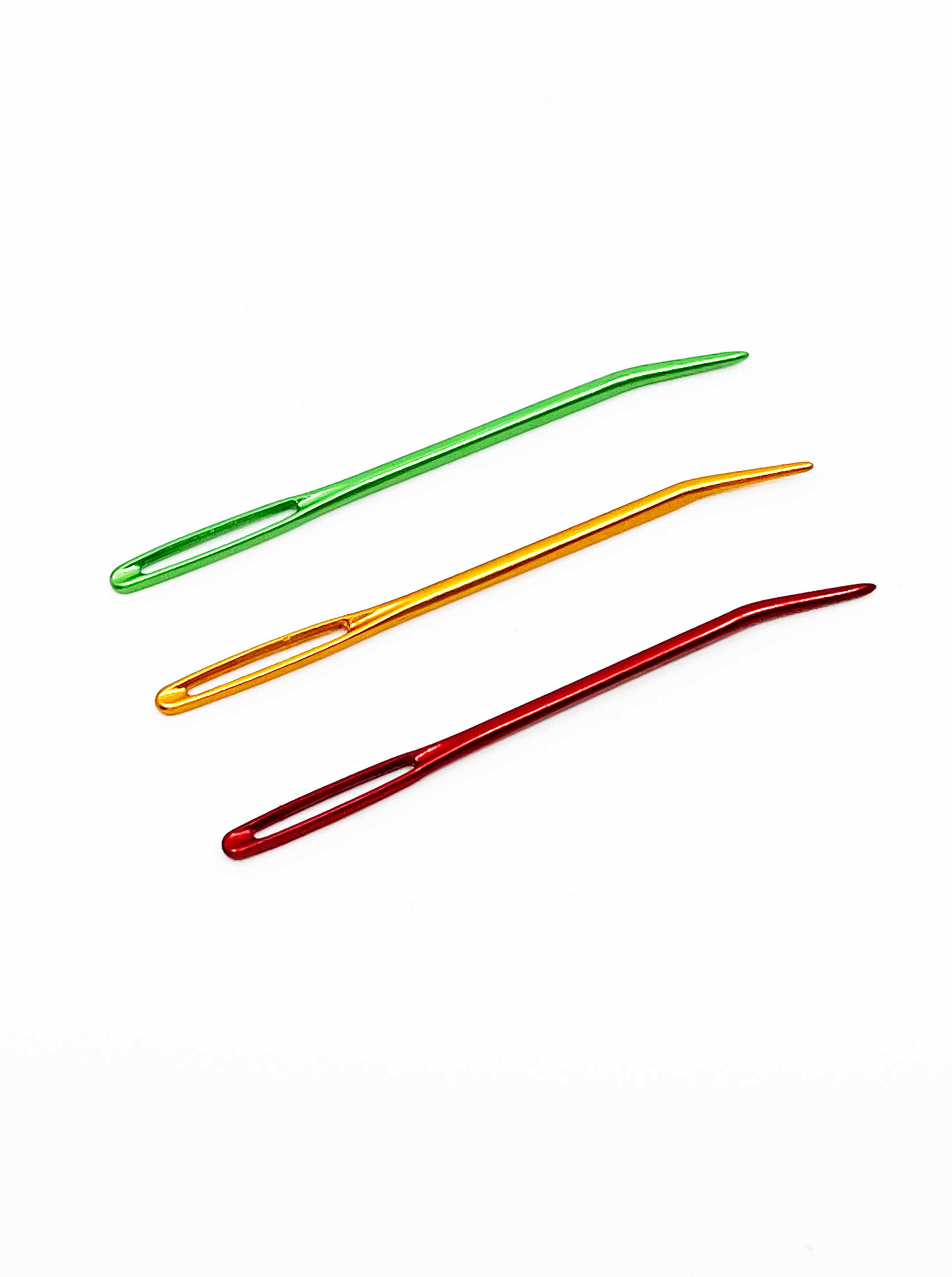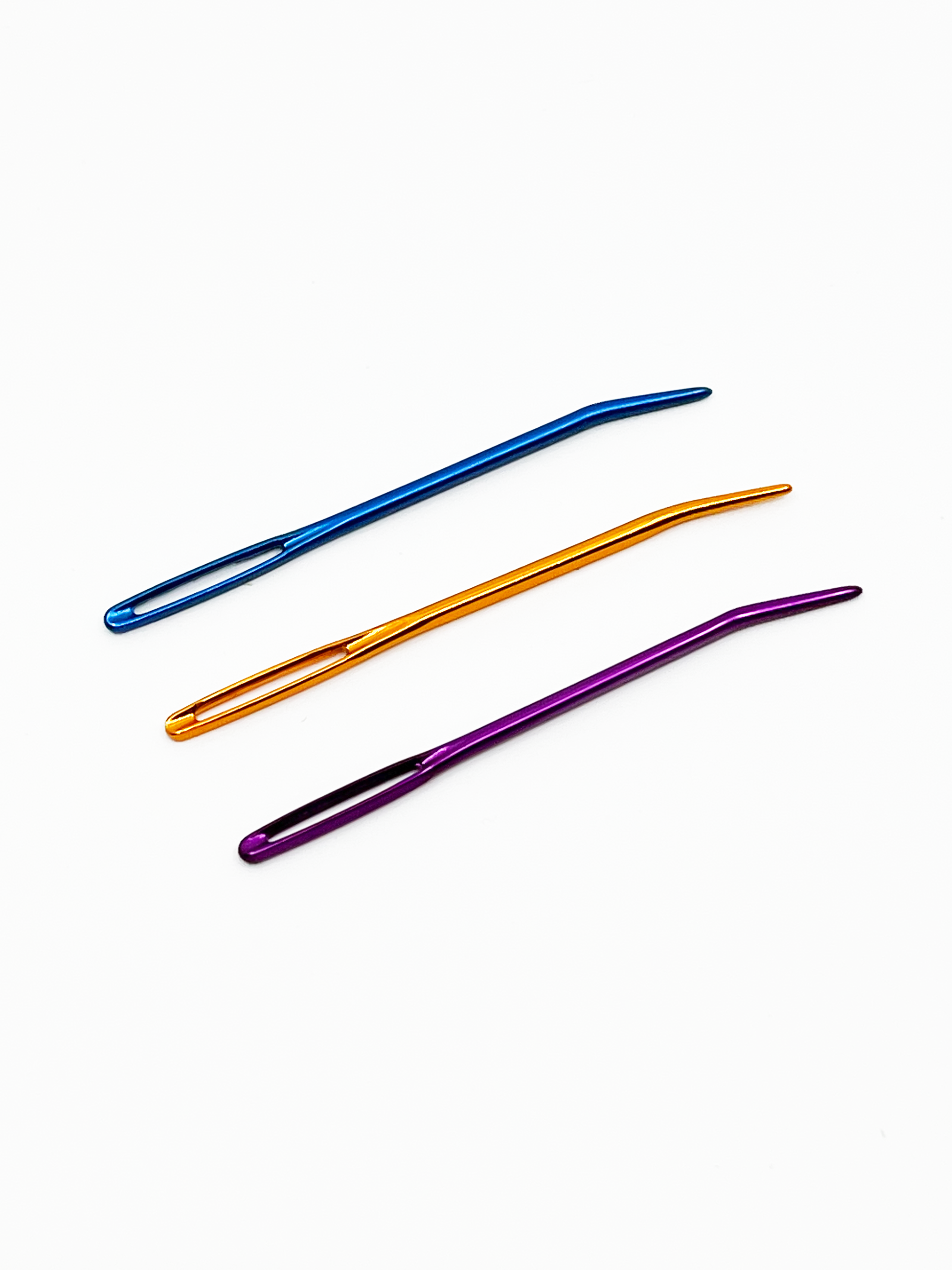 Stórar frágangsnálar með sveigðum oddi, einstaklega þæginlegt að hafa oddinn sveigðan þegar lykkjað er saman undir handvegi.