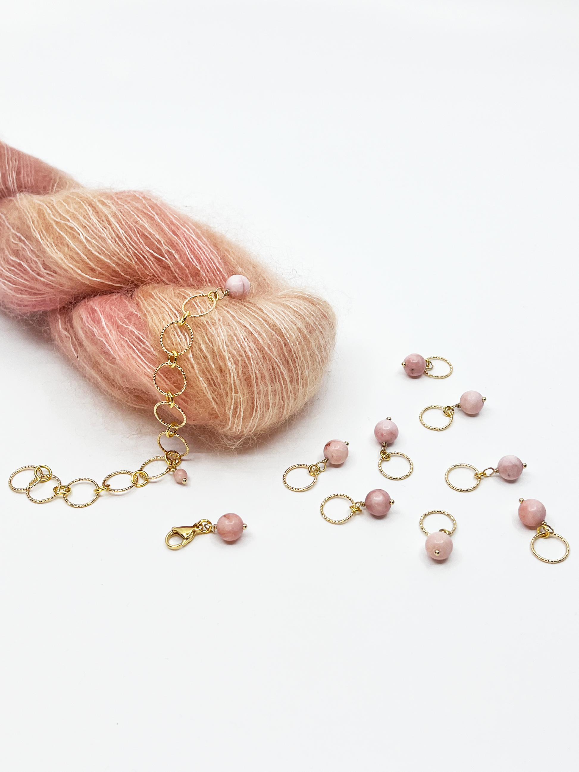 Perlurnar eru úr náttúrustein og hömruðu hringirnir eru með 18K gullhúðun.